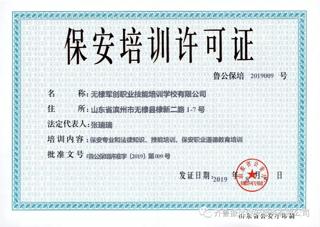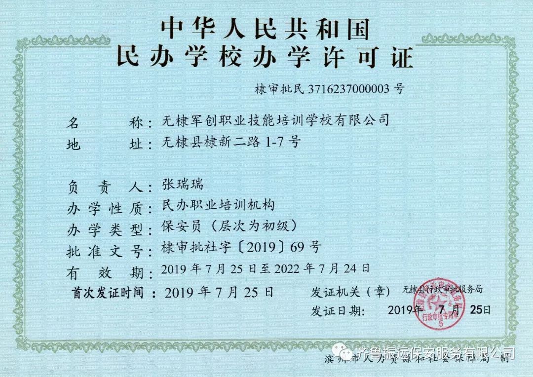 无棣军创职业技能培训学校是由无棣县行政审批服务局批准成立,经省、市公安主管部门批准备案后无棣县首家从事保安职业技能培训、考试,保安专业和法律知识培训、保安职业道德教育培训机构。