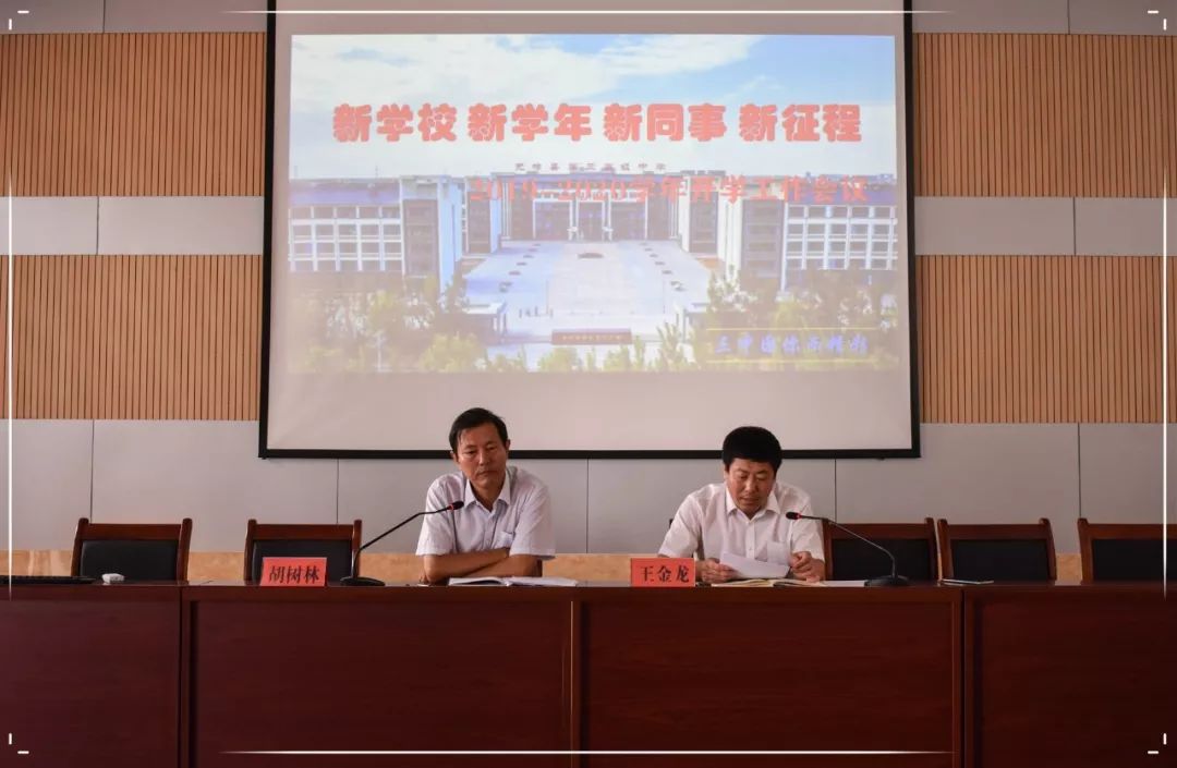 会上,胡树林书记首先表示了对新同事的欢迎,然后介绍了三中工作、领导班子分工,宣读了无棣三中人员工作安排。王金龙校长安排部署开学工作。