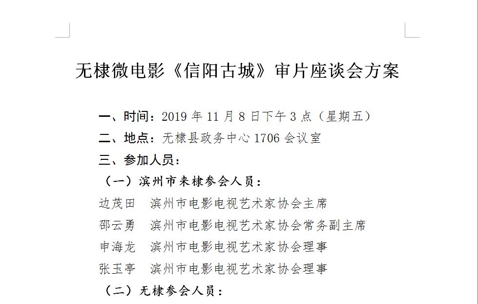 11月8日,再次召开无棣微电影《信阳古城》审片座谈会,青即将与观众见面。
