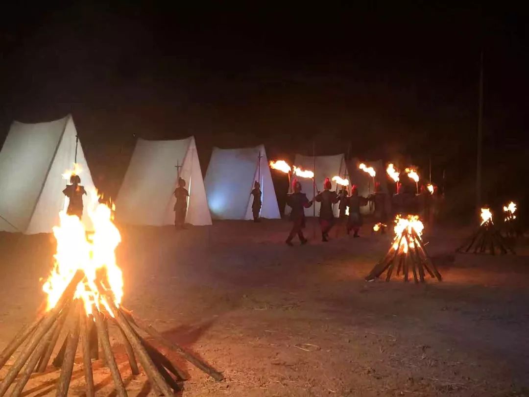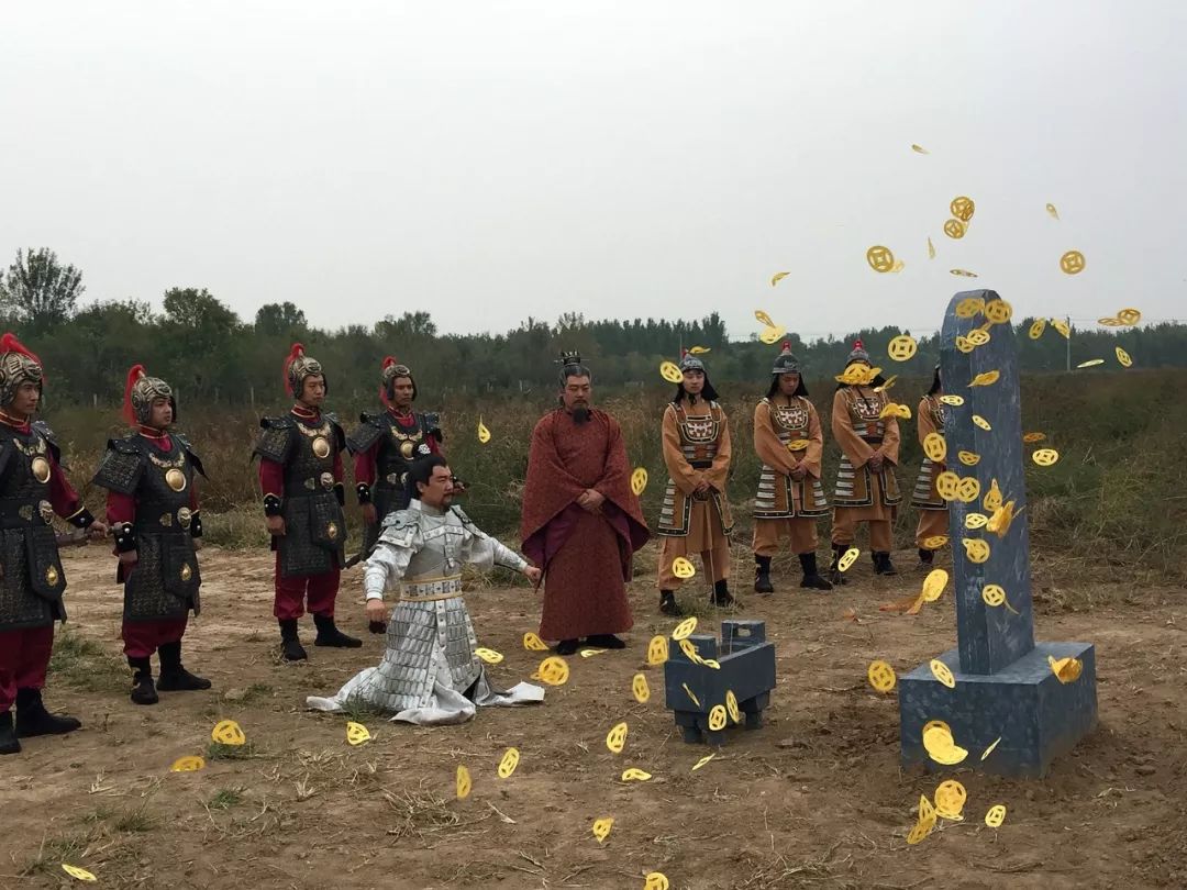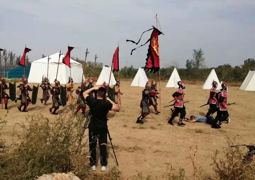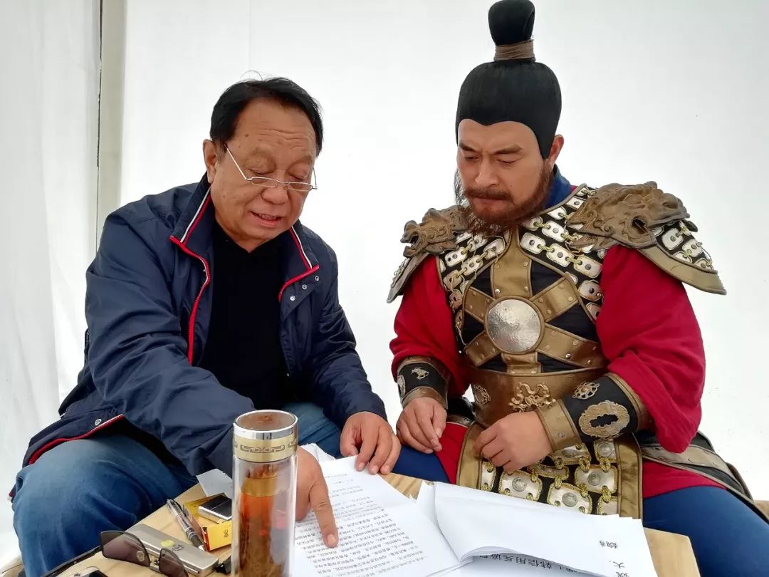导演边茂田与演员魏王豹研究剧本此片以无棣古八景之一汉垒盘旋……信阳古城遗址史料记载与传说、传奇为题材还原展示了楚汉相争的恢宏历史场景。