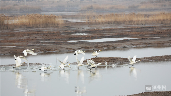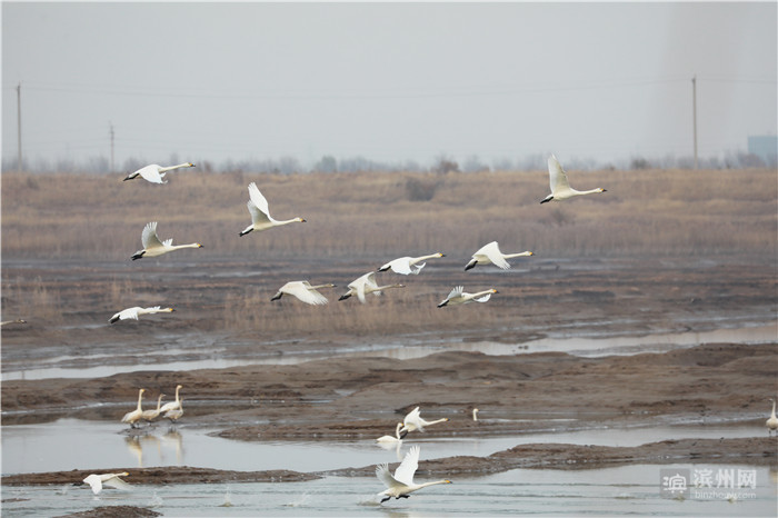 无棣县位于山东省东北部,地处黄河三角洲腹地,濒临渤海。是东北亚鸟类迁徙的重要“驿站”。 小天鹅繁殖于西伯利亚苔原地带,迁徙经过我国东北和华北到鄱阳湖、崇明东滩等地越冬。往年,在春季4月中旬至5月初和秋季11月初至11月中下旬,在无棣县境内曾观察到小天鹅种群,少的时候六七只,多的时候有二三十只。今年有多达三百余只的较大种群栖息饮马湖省级湿地公园,实属罕见。