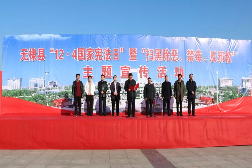 今年12月4日是全国第六个国家宪法日。为进一步弘扬宪法精神,引导群众树立法治意识, 12月4日上午,无棣县“12·4国家宪法日”暨“扫黑除恶、禁毒、反邪教”主题宣传活动在新区广场举行,无棣县市场监管局参加宣传活动。
