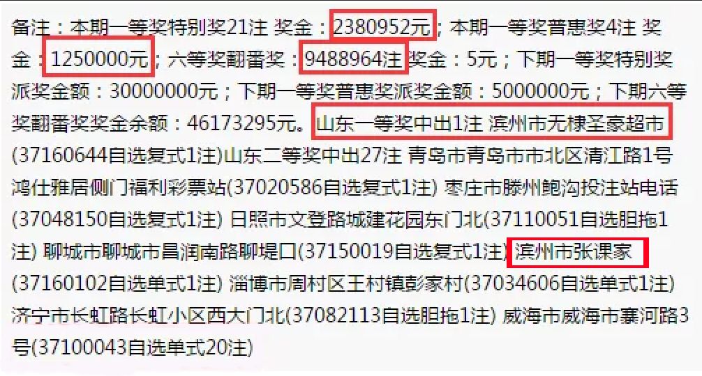 在第140期25注一等奖中,其中有21注获得一等奖特别奖加奖238万余元,单注奖金合计达到808万余元;4注获得一等奖普惠奖加奖125万,单注奖金合计为694万余元。六等奖翻番奖当期开出9488964注。