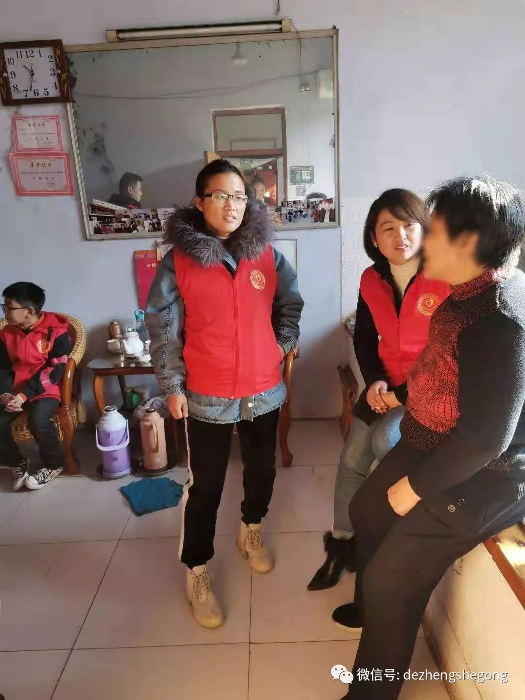 小合越来越帅气,他跟爷爷性格一样,阳光乐观,孩子在遭遇家庭变故之后仍有积极向上的健康心态去面对生活与学习,而且学习成绩出类拔萃,真为他骄傲!我们一直为他加油鼓励!跟他谈及学习,他告诉德正小队友中的弟弟妹妹们自己学习的秘诀:课前预习,课上集中精力,课后复习!为孩子坚强的毅力与信心点赞。我跟队友冯耀英、张静、刘风玉、郭玉红与孩子谈了谈知心话并告诉他马上就要年考了,营养一定要跟上,自己在外注意保暖,如果有啥需要叔叔阿姨们帮忙的地方可以随时联系我们。”
