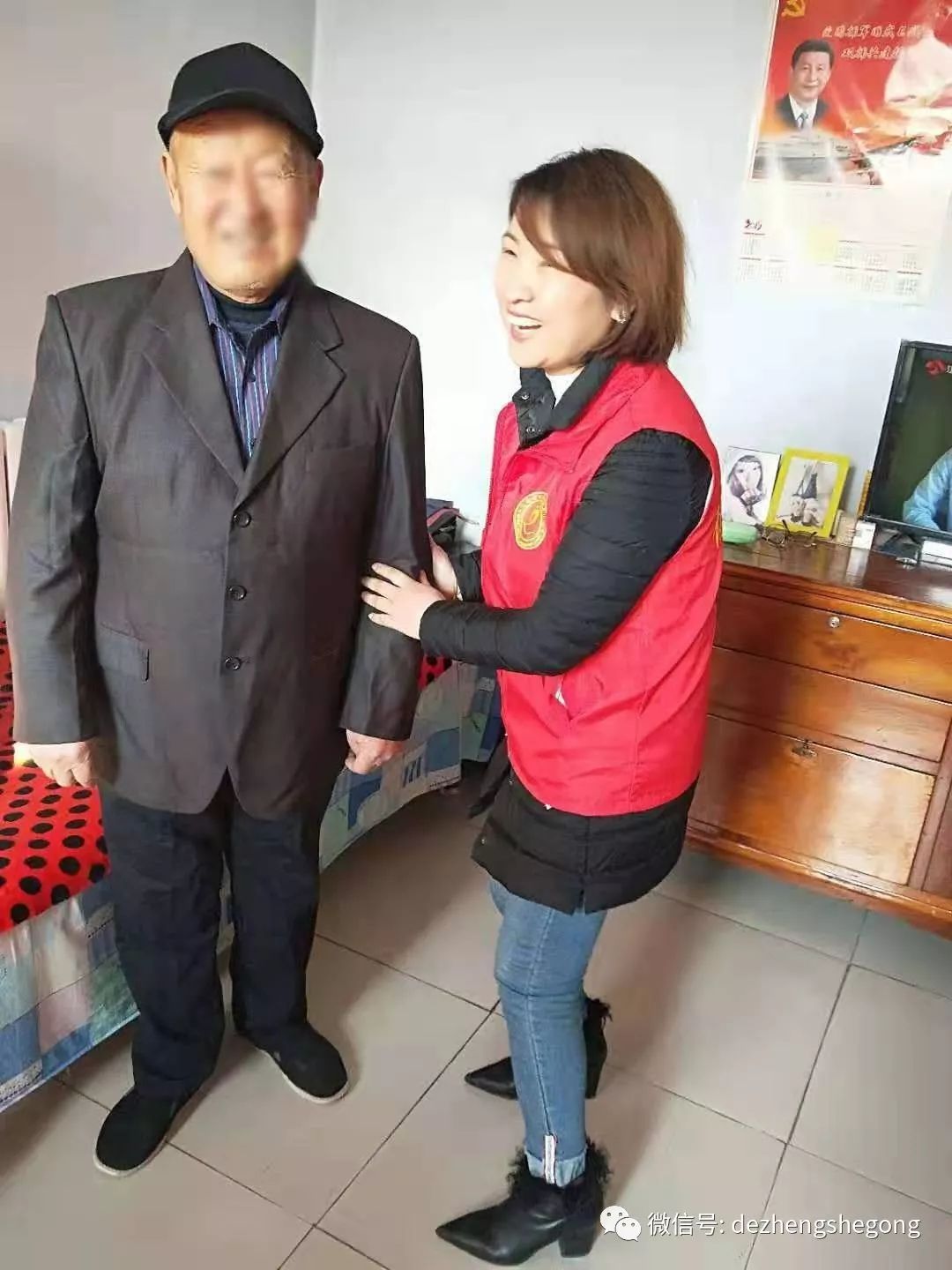 他非常开朗健谈,穿上西装后,爷爷高兴的合不拢嘴,念叨着:“太感谢这些好孩子们了!”我们所去的大队员小队员在爷爷奶奶眼里都成了孩子,而且都是好孩子。