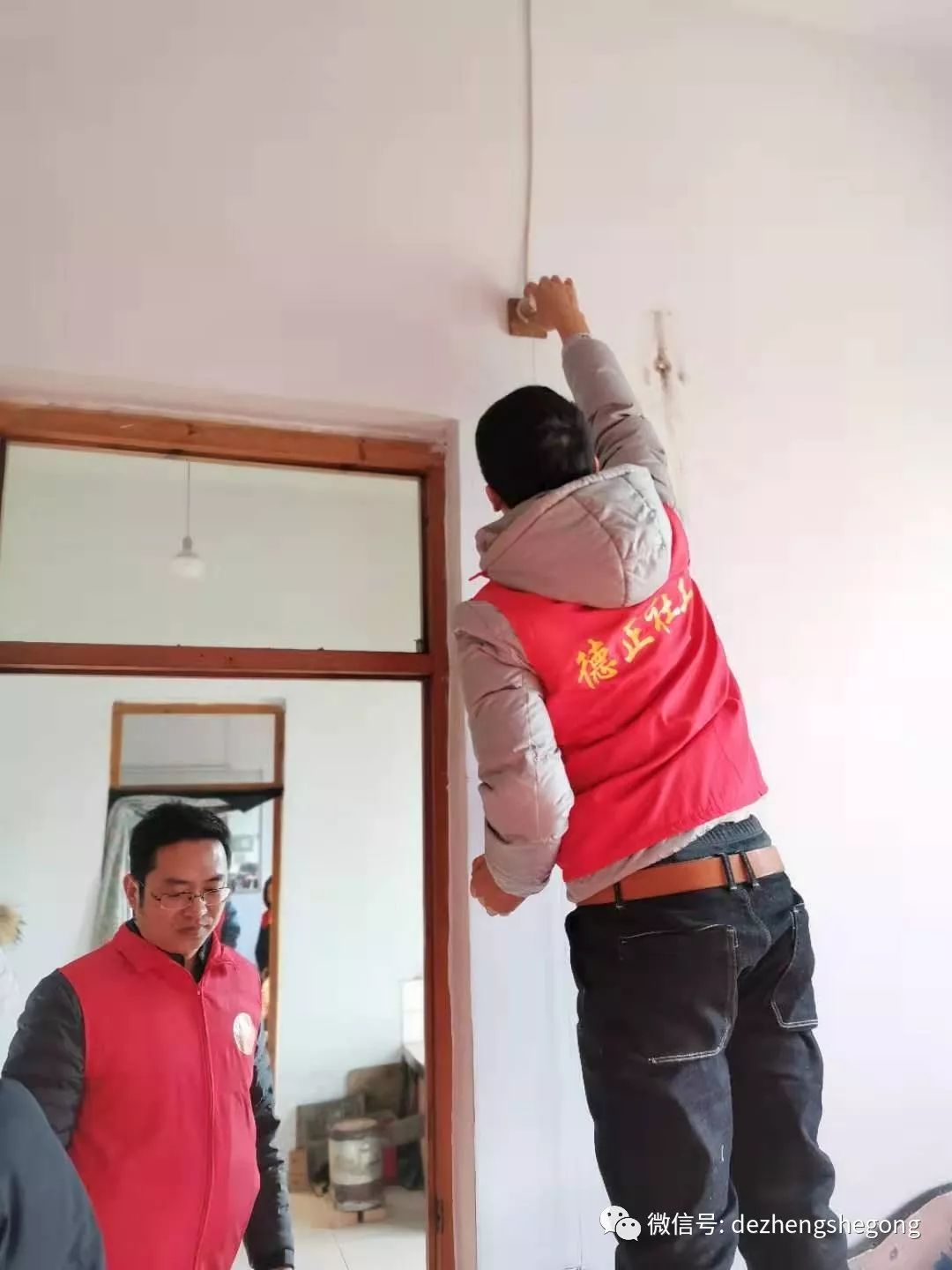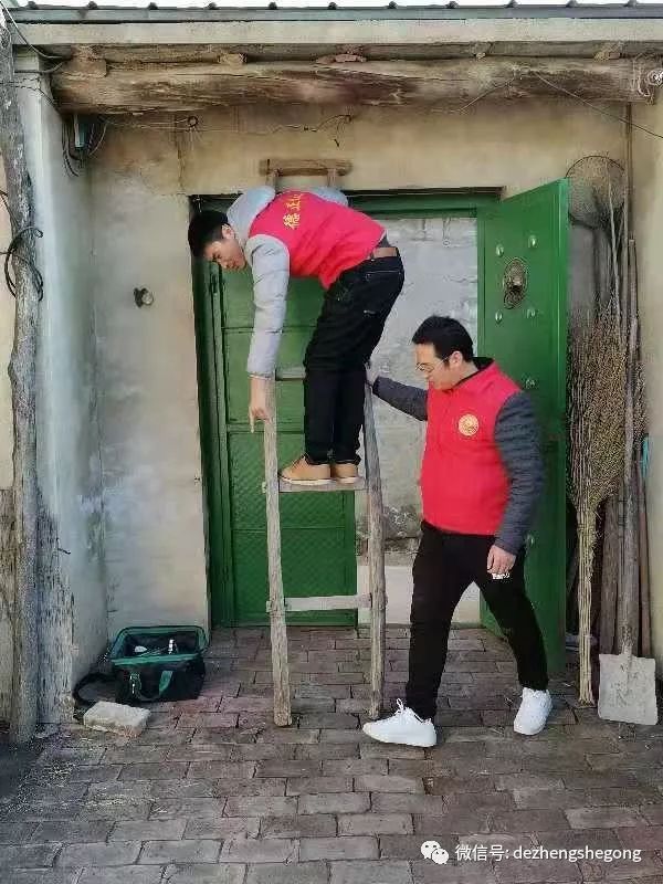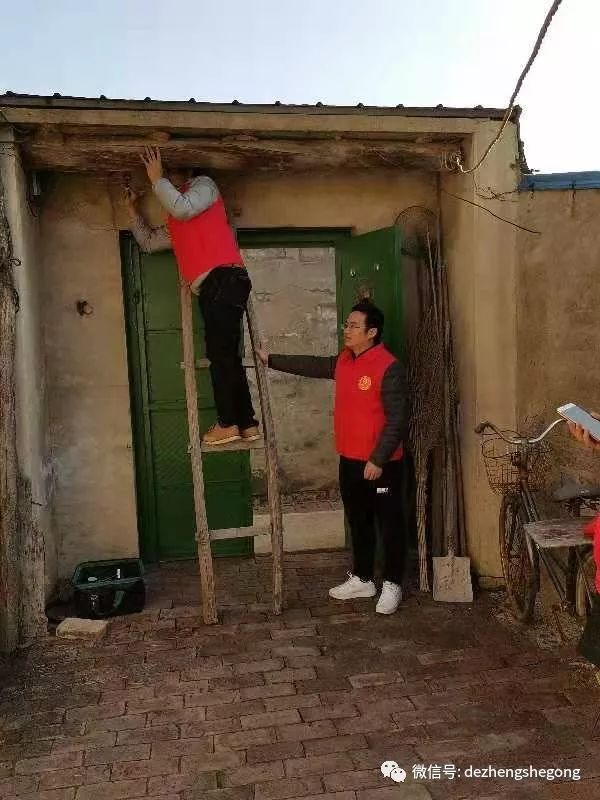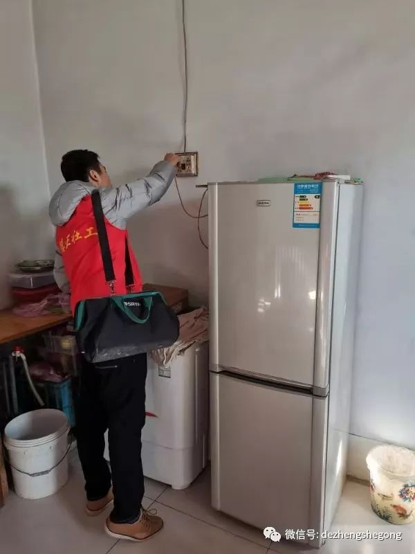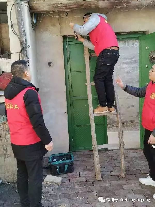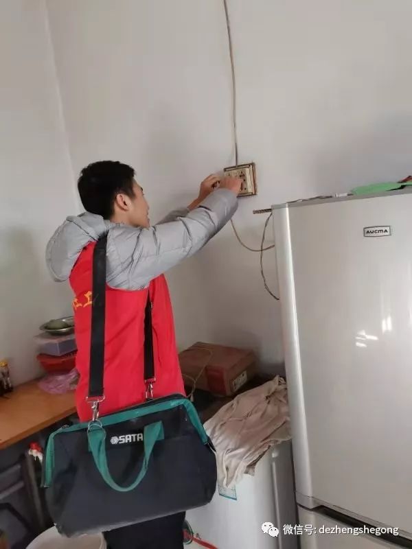 我们德正的专业电工冯树磊出发时又背上了他的专用工具包。到了小合家,他主动帮爷爷检修起线路来,并在爷爷的引领下为他粘好了线头、修好了电闸、接好了插排,队友董传辉、刘国强做了辅助工作,并帮爷爷打扫了卫生。