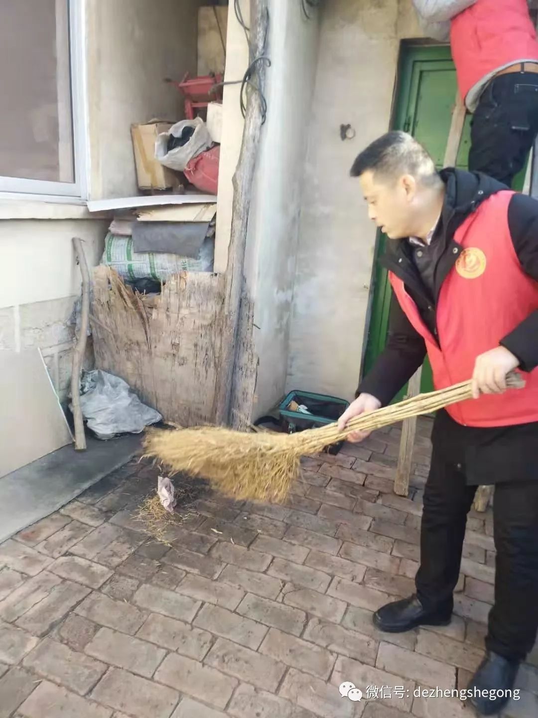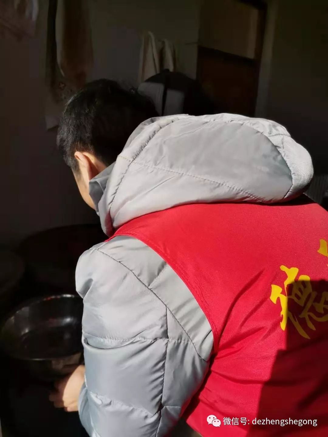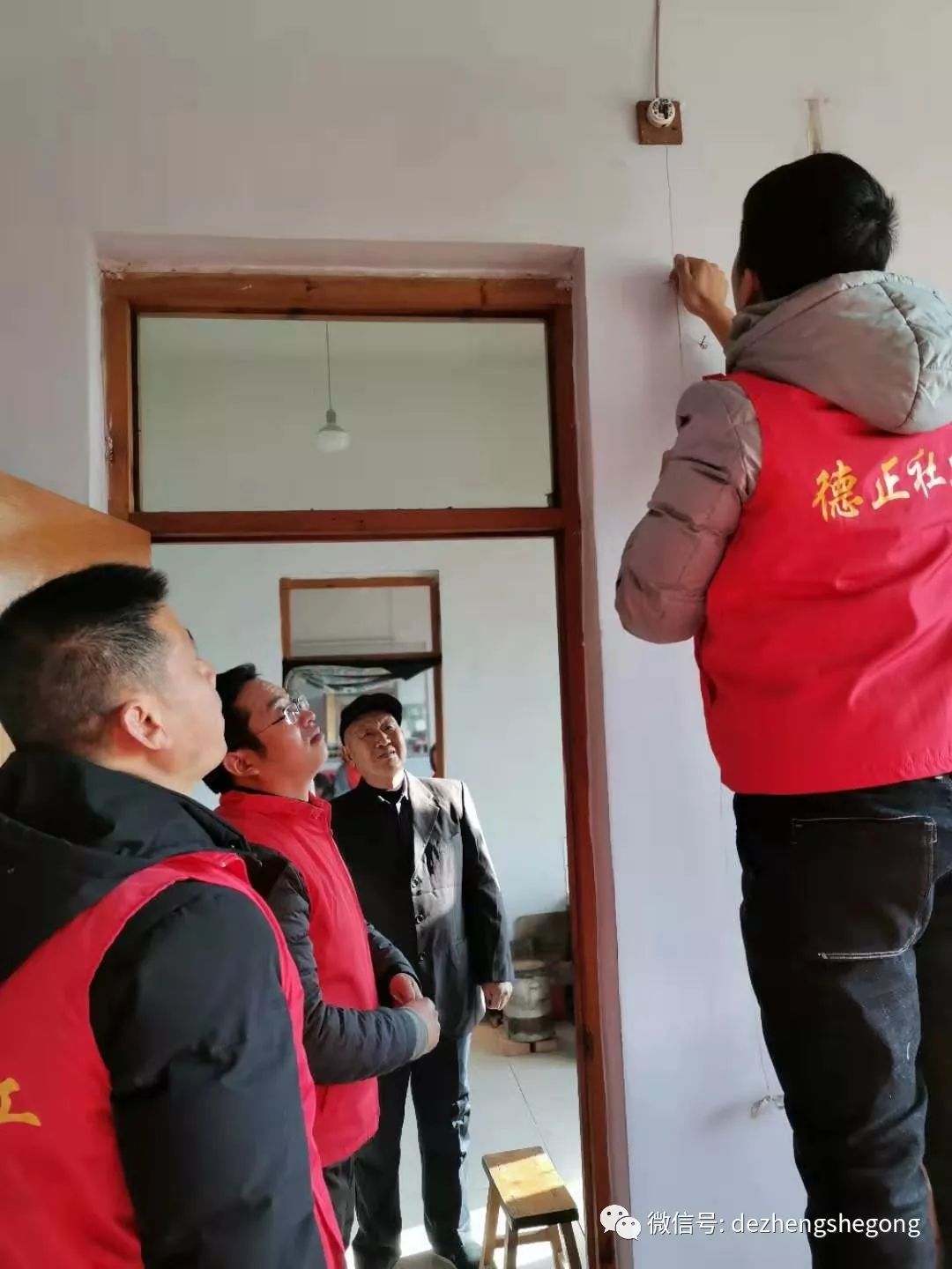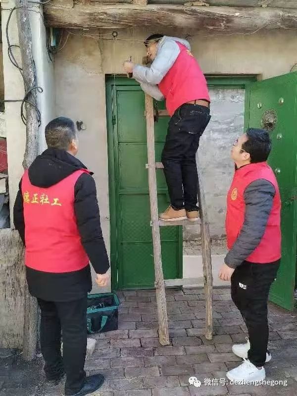 我们德正的专业电工冯树磊出发时又背上了他的专用工具包。到了小合家,他主动帮爷爷检修起线路来,并在爷爷的引领下为他粘好了线头、修好了电闸、接好了插排,队友董传辉、刘国强做了辅助工作,并帮爷爷打扫了卫生。