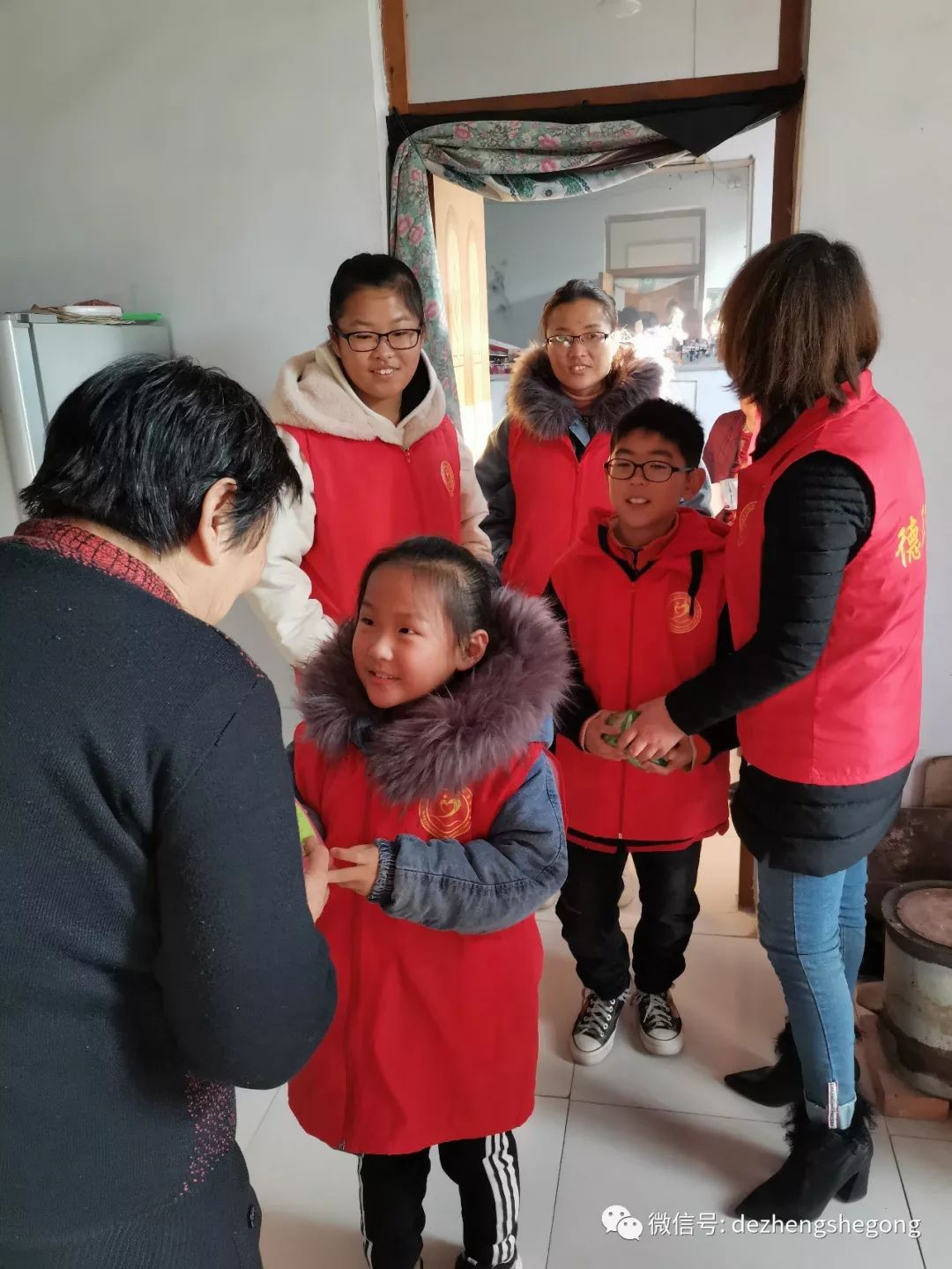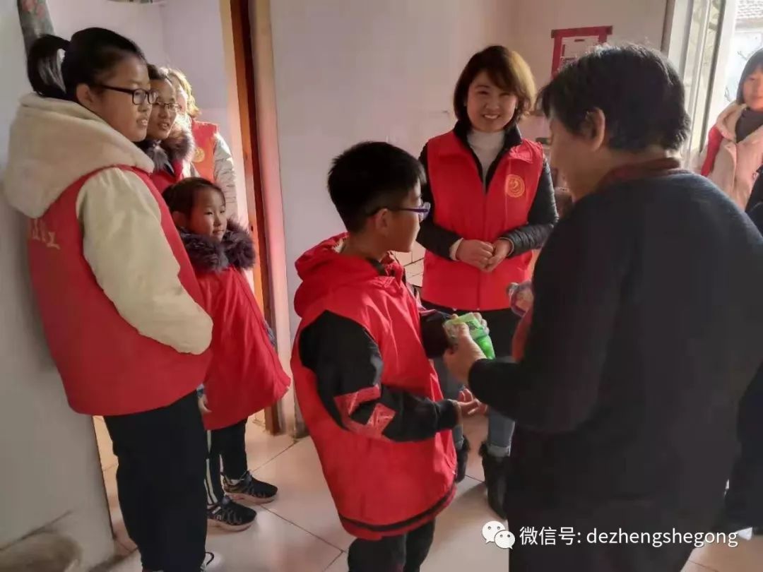 德正最小的队员年仅6岁,他们见了爷爷奶奶后,分别上前问好并送上美好的祝福!小爱心队员杨宏力、张嘉钰、张嘉璐、张欣雅、边刚乾得到了爷爷奶奶慈爱的夸赞。