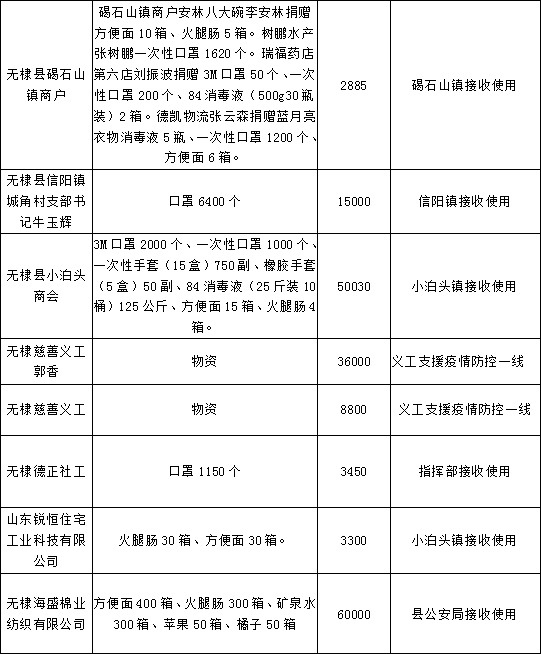 无棣县“新型肺炎疫情防控”募捐物资及分配
