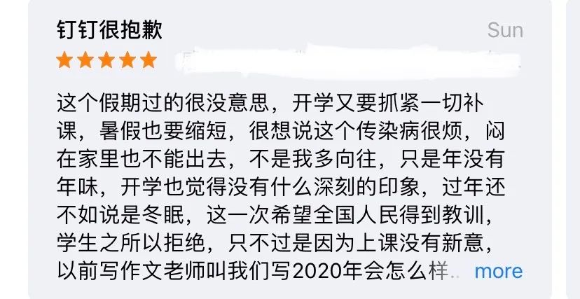 这对于钉钉来说,怎么看都是一件好事,大量的流量涌入,随之而来的红利自不必说。但事情却在朝着所有人意想不到的方向发展。不久之后,在应用商店的钉钉页面之下涌现出了大量学生给出的一星恶意差评,这些评论并说不出什么具体的差评理由,仅仅表示对于放假期间还要上课的不满,甚至语带讽刺地扬言“五星好评分期付款”。由此,钉钉在应用商店的软件评分也跌至了谷底。