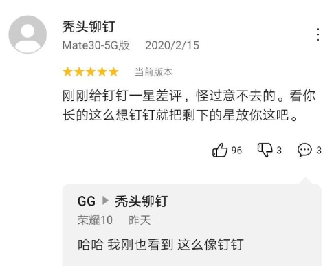 更好笑的是,另一个软件“动漫之家”由于其图标目测与钉钉存在高达80%以上的相似度,意外地也受到了大量的五星“厚爱”。网友表示“刚给钉钉打了一星,有些过意不去,看你和钉钉长得这么像,就给你五星吧。”令人哭笑不得。