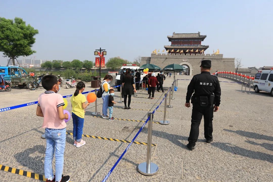 在全国疫情没有彻底消除,国家明确跨省跨境旅游暂不恢复的前提下,宅家憋了数月的人们终于可以出来透透气,放飞一下自己。于是,选择了近郊游、家乡游、乡村游、自驾游。为有效缓解瞬时流量压力、避免扎堆聚集,无棣古城南城门4台测温枪同时开放,入城游客保持1.5米间隔排起“长龙”,“测温、登记、扫码、入城”一气呵成,现场井然有序。