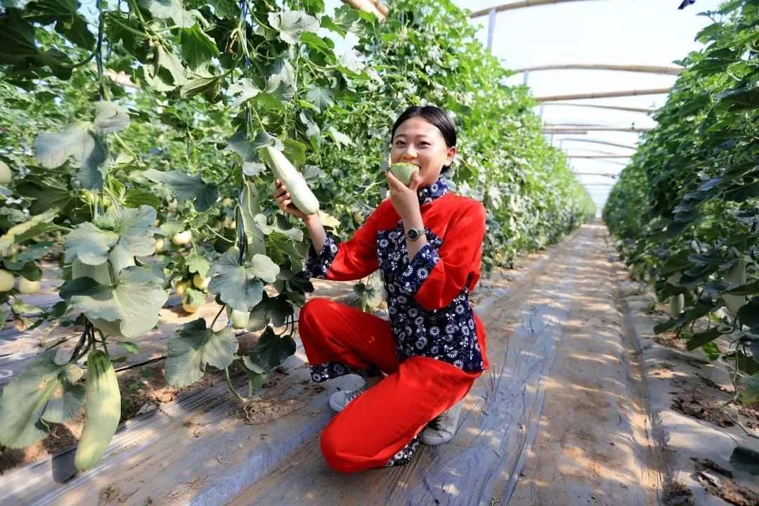 信阳镇小孟村的“胖大姐”家庭农场羊角蜜甜瓜,长势喜人,采摘游人络绎不绝。