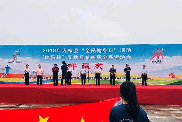 体彩杯”无棣县第四届全民运动会由中共无棣县委、无棣县人民政府主办,无棣县体育局承办,山东省体育彩票管理中心滨州分中心赞助于2018年8月8日上午8:30在镜湖莲池广场举行的开幕仪式。