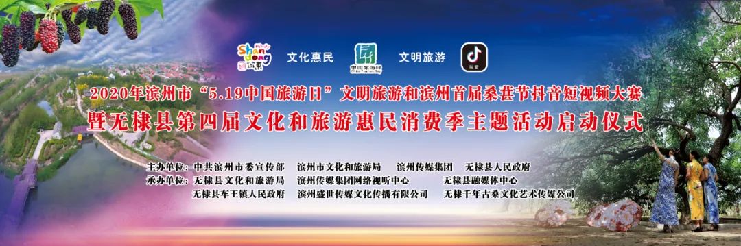 定于2020年5月19日举办2020年滨州市“5・19中国旅游日”文明旅游和滨州首届桑葚节抖音短视频大赛暨无棣县第四届文化和旅游惠民消费季主题活动启动仪式。具体方案如下: