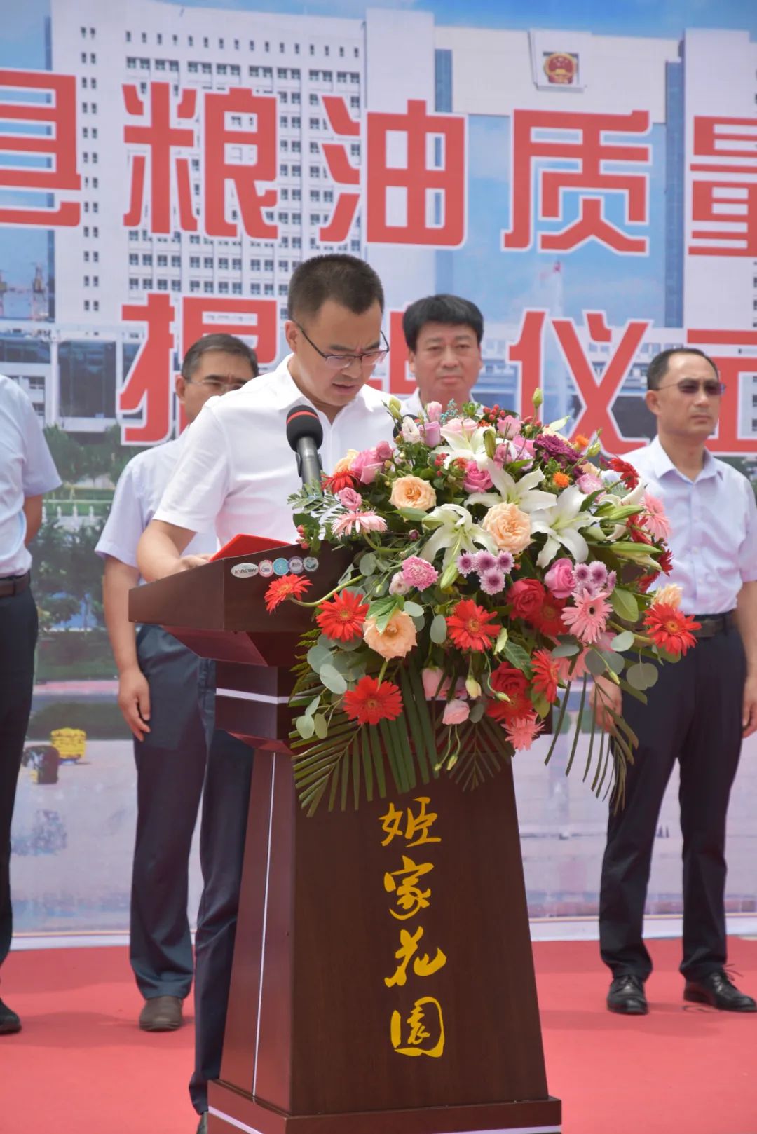 2020年7月10日在山东花园食品有限公司举行了无棣县粮油质量检测站揭牌仪式,滨州市粮食和物资储备局局长高玉华,无棣县县委副书记、县长郑振亮为检测站揭牌,县委副书记王涛主持揭牌仪式,市县相关科局领导,县粮油质量检测站全体工作人员,相关粮油企业主要负责人出席揭牌仪式。