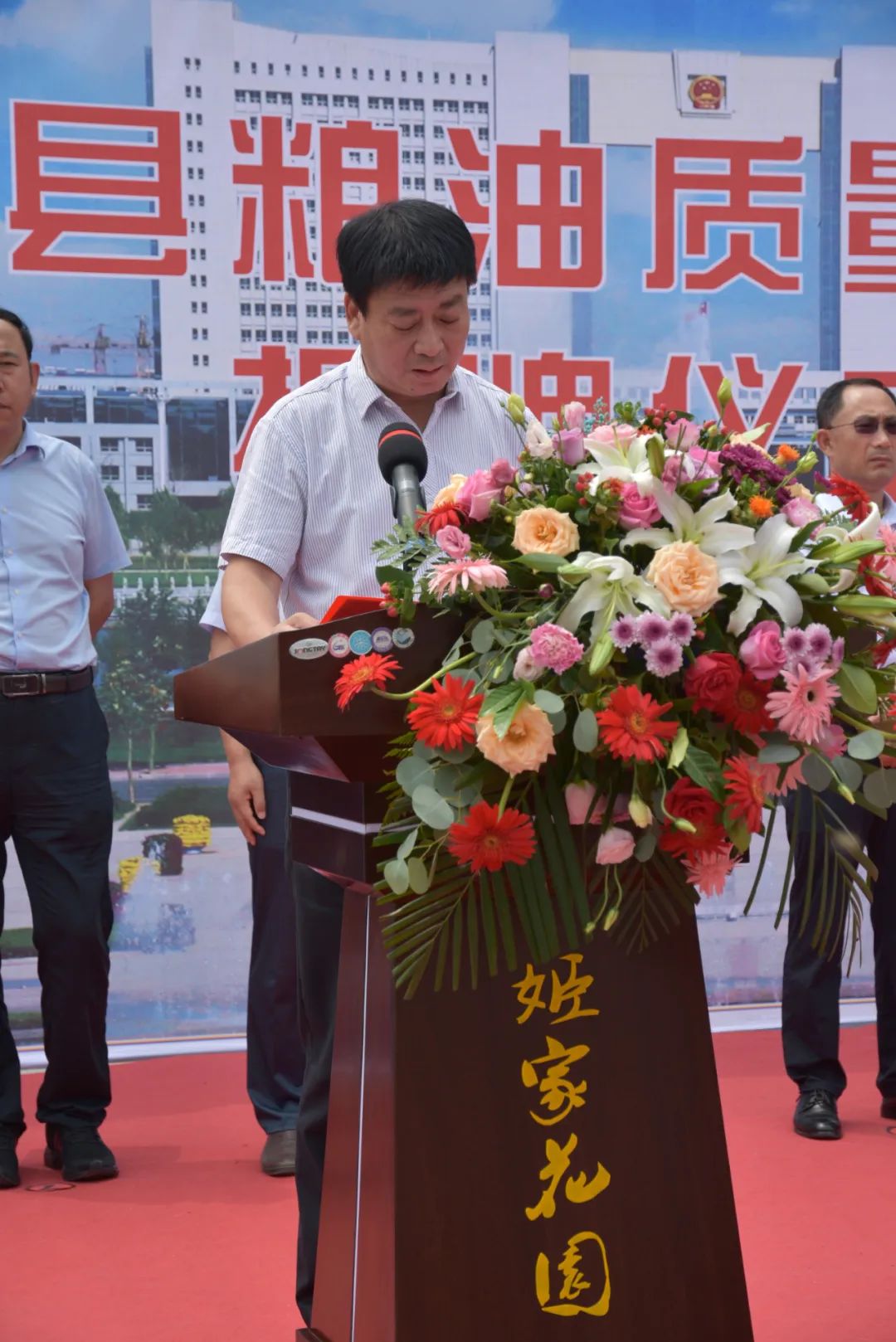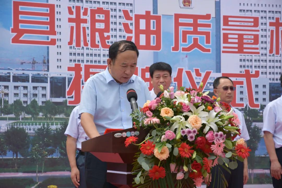 市粮食和物资储备局局长高玉华和县委副书记、县长郑振亮为检测站揭牌