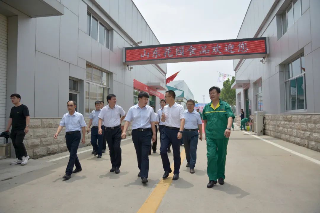 揭牌仪式结束后,市县领导对姬家花园营养餐和原香小榨花生油生产车间进行了参观指导,山东花园食品有限公司负责人张瑞新陪同参观。