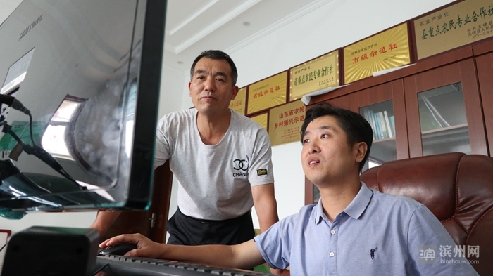 张杰与果农刘建民正在对接产品信息上传工作。