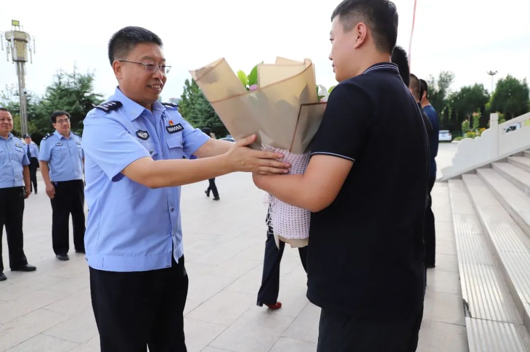 无棣县副县长、县公安局局长王树声给专案组民警献花