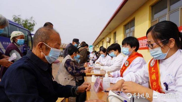 10月15日,滨州市派无棣县乡村振兴服务二队联合滨州市人民医院党团志愿服务队到无棣县小泊头镇郭马村举办“健康行”送医下乡义诊活动,来自滨州市人民医院的23名医疗队队员为当地村民开展了健康义诊服务。