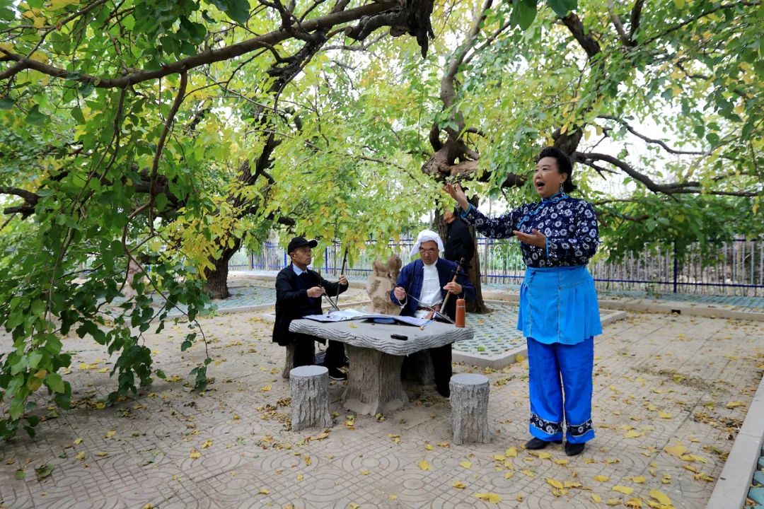 在千年古桑园景区,离退休老干部们感受到文旅无棣新变化,情不自禁席地而坐为在场的游客献上了一场激情演艺。
