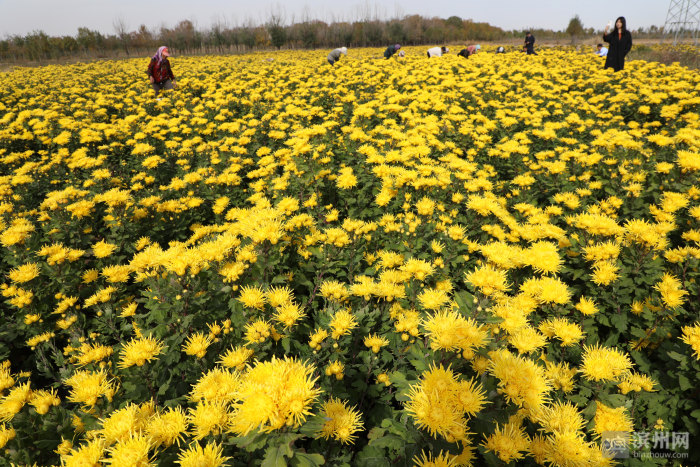 滨州日报/滨州网讯 10月28日,山东省无棣县佘家镇门家道口村众达种植专业合作社的员工在地里采摘药菊。