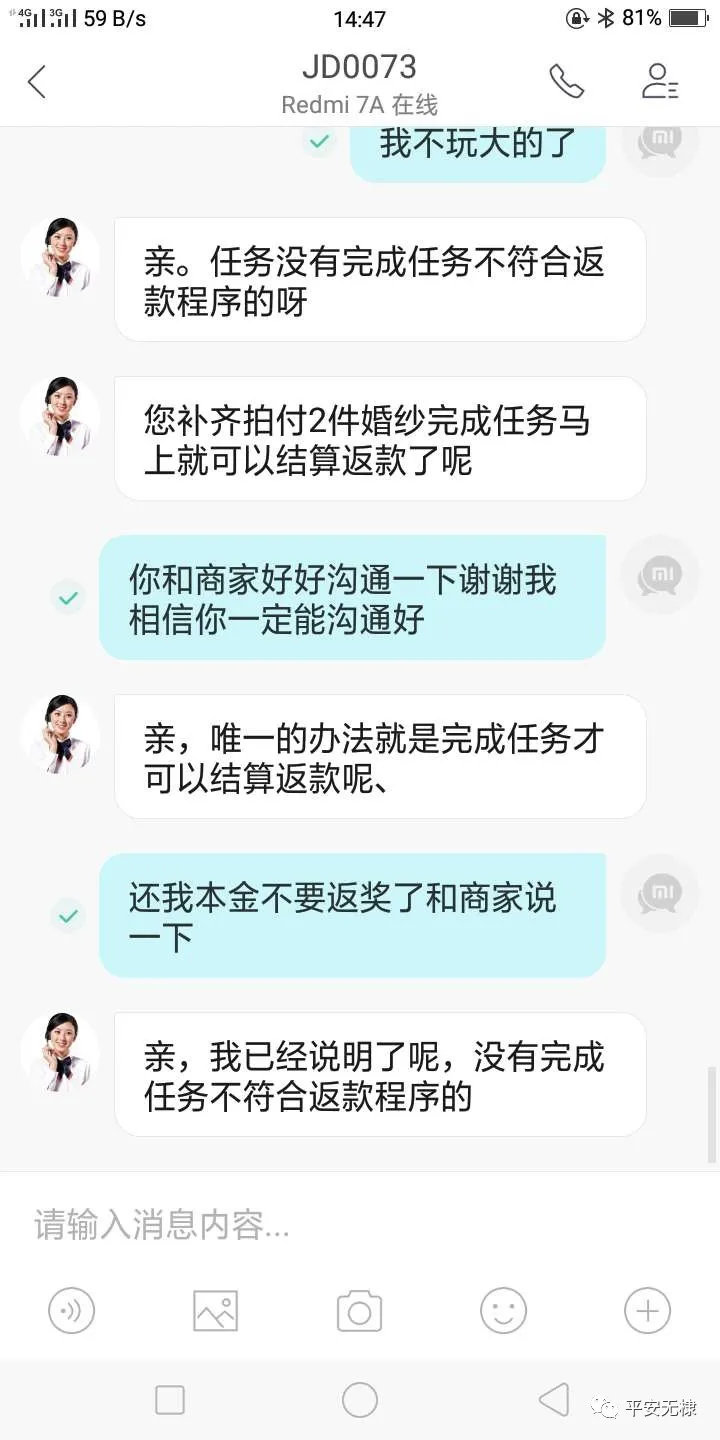 陈先生在完成第一单任务后,很快在“某聊”平台收到了对方的返现。放下戒心的陈先生按照对方的要求做任务,一下连刷了4单,次日,“客服”开始要求陈先生大额刷单,陈先生本想取走本金收手不干,并向对方索要返现时,客服以没完成任务为由继续让他刷单,而打开app账户查看余额时,自己投入的本金和返现已不知所踪,陈先生这才意识到被骗。
