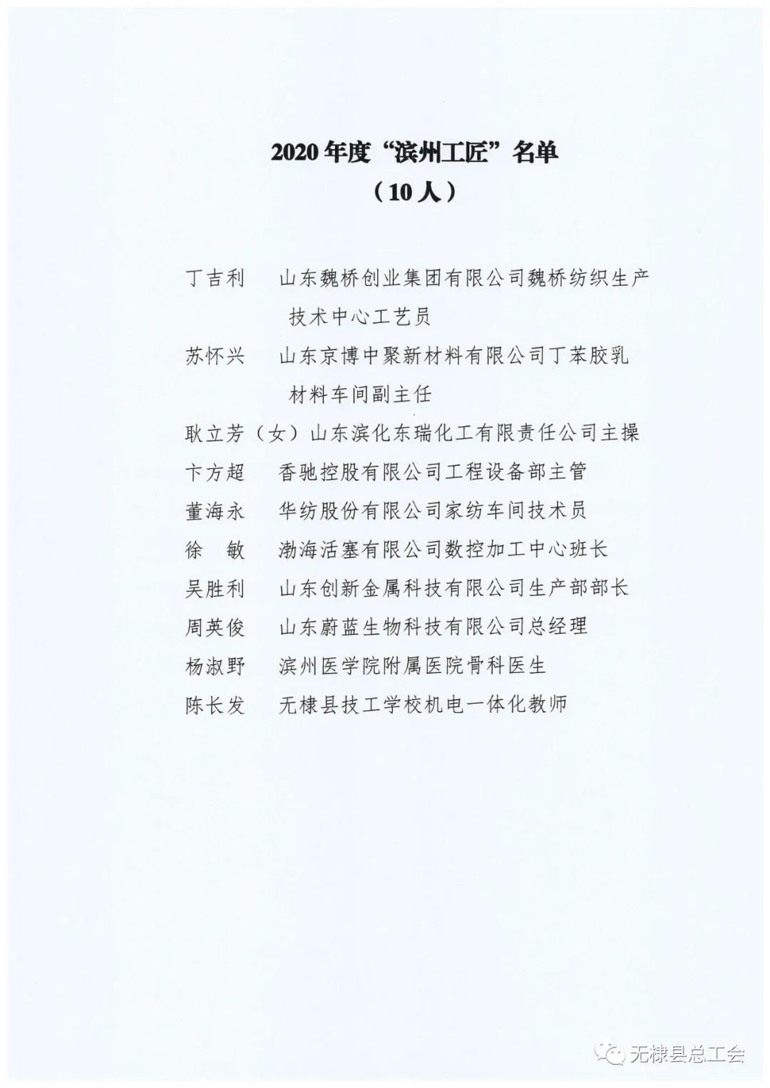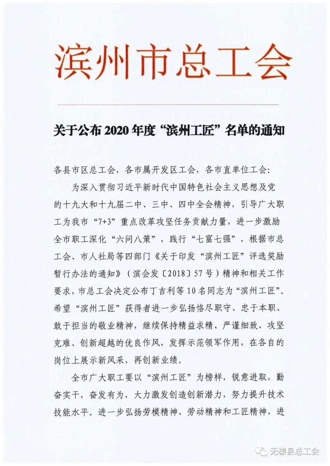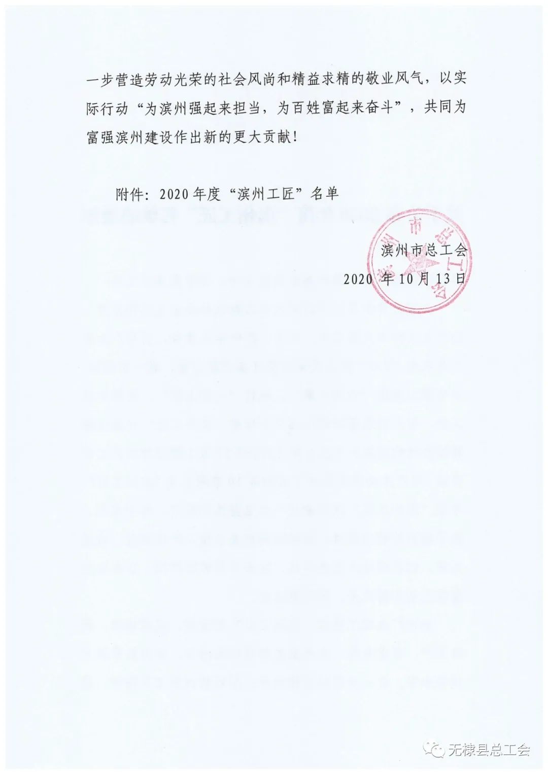 关于转发《关于命名2020年滨州市“工人先锋号”的决定》《关于公布2020年“滨州工匠”名单的通知》的通知