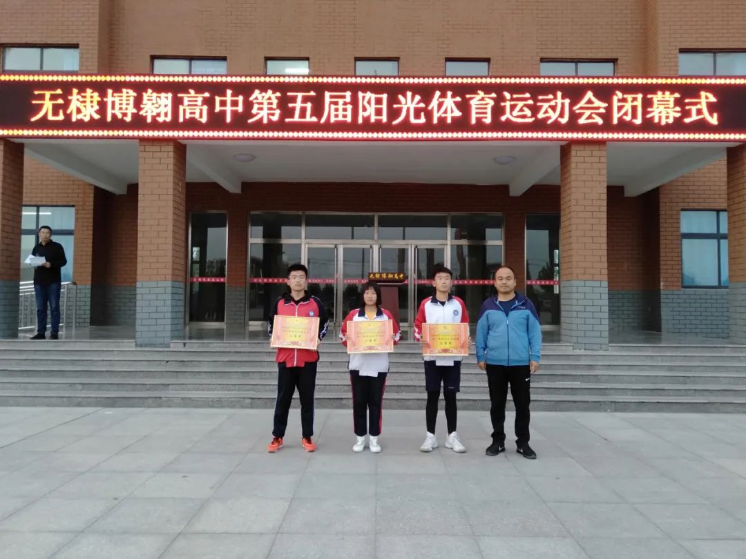无棣博翱高级中学第五届阳光体育运动会在工作人员、裁判员和运动员及师生共同努力下取得了圆满成功。体育赛事的竞争,不仅仅是体能和技能的竞争,更是毅力和意志的竞争。全体同学一定会把赛场上表现出来的坚韧不拔意志和顽强拼搏的作风用到以后的学习当中去,使自己的身体更加健康,行为更加规范,成绩更加进步,以昂扬的斗志、崭新的姿态和饱满的激情谱写我校新篇章。