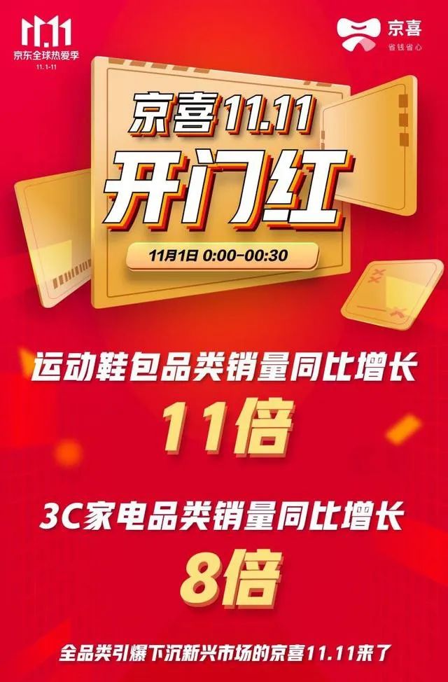 此外,京东的京喜也在穷追猛打。今年双十一,京喜平台同样推出了“1元好用才香节”,双十一第一天,京喜平台开场30分钟下单量同比增长387%。