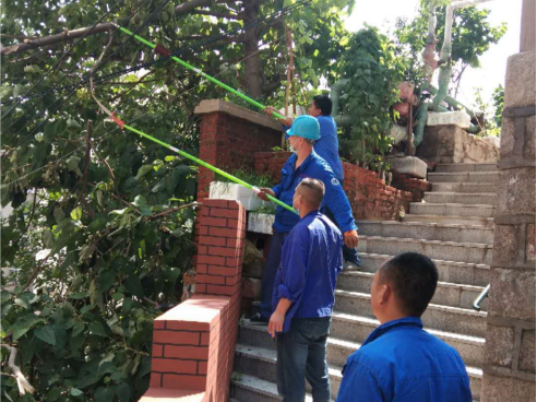 “无棣四路23号,碗口粗的树枝被刮断了,正好压在电网上,我在这儿等着,你们快来。”正放下电话的是无棣路社区城市治理服务分站的站长傅隆盛,夜里风大雨急,挂断的树枝搭在了电网上摇摇欲坠,傅隆盛一大早便给市电网抢修人员打去了电话。傅隆盛从分站里拿来大喇叭,一边在路旁疏散人流,一边帮忙递工具抬树枝,成功解决了此次危机。