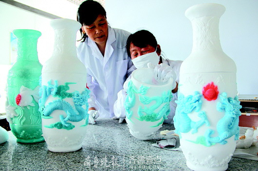 “通常我们一件普通的海瓷花瓶也就是几百元,但是经过名画家的手,就变成了精美的艺术瓷,市场价最高可达50万元呢!”海瓷集团副总经理高清江指着一件海瓷艺术花瓶,眉飞色舞地告诉记者。再普通不过的贝壳做成海瓷,价值大涨,再给海瓷嵌入文化元素,价值又一次飞跃。经过名家之手的艺术瓷均价达10万元以上,高清江说,海瓷集团年内力争实现海瓷艺术产值2.1亿元、利润4700万元。