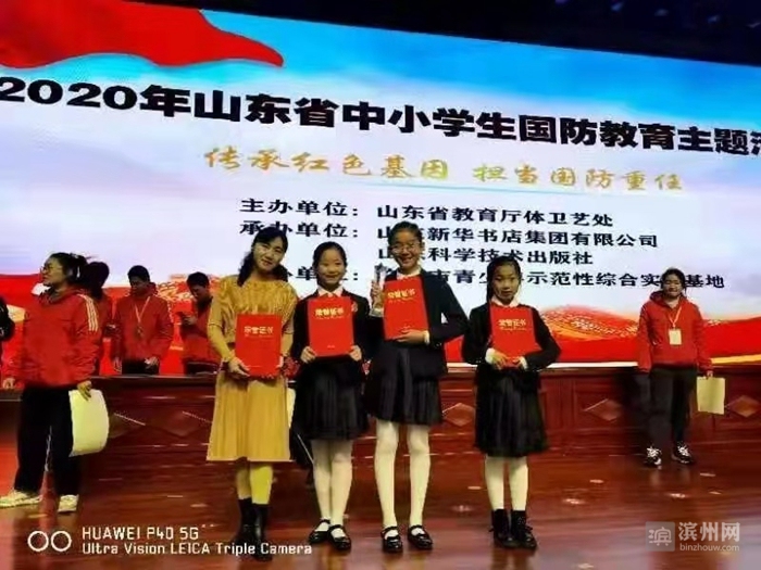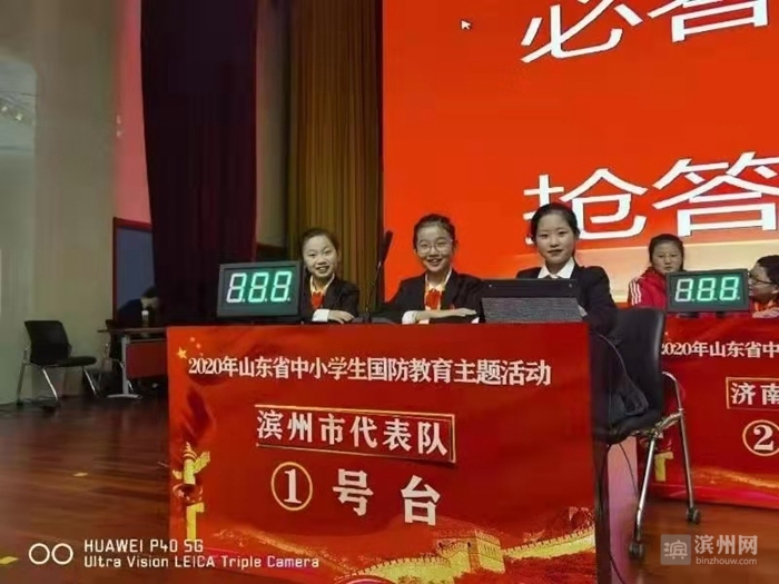 滨州日报/滨州网讯 11月23日,由山东省教育厅主办的2020年山东省中小学生国防知识竞赛在临沂市青少年示范性综合实践基地落下帷幕。来自全省16市中小学的48支代表队共百余名选手参加了比赛。无棣县第二实验小学张悦彤同学和滨州实验学校李梓彤同学、滨州开发区第二中学张鑫雨同学组成的“三人团”代表滨州市参赛,经过激烈的角逐,滨州市代表队脱颖而出,取得了全省小学组二等奖的好成绩,为滨州市、为无棣县、为学校赢得了荣誉。