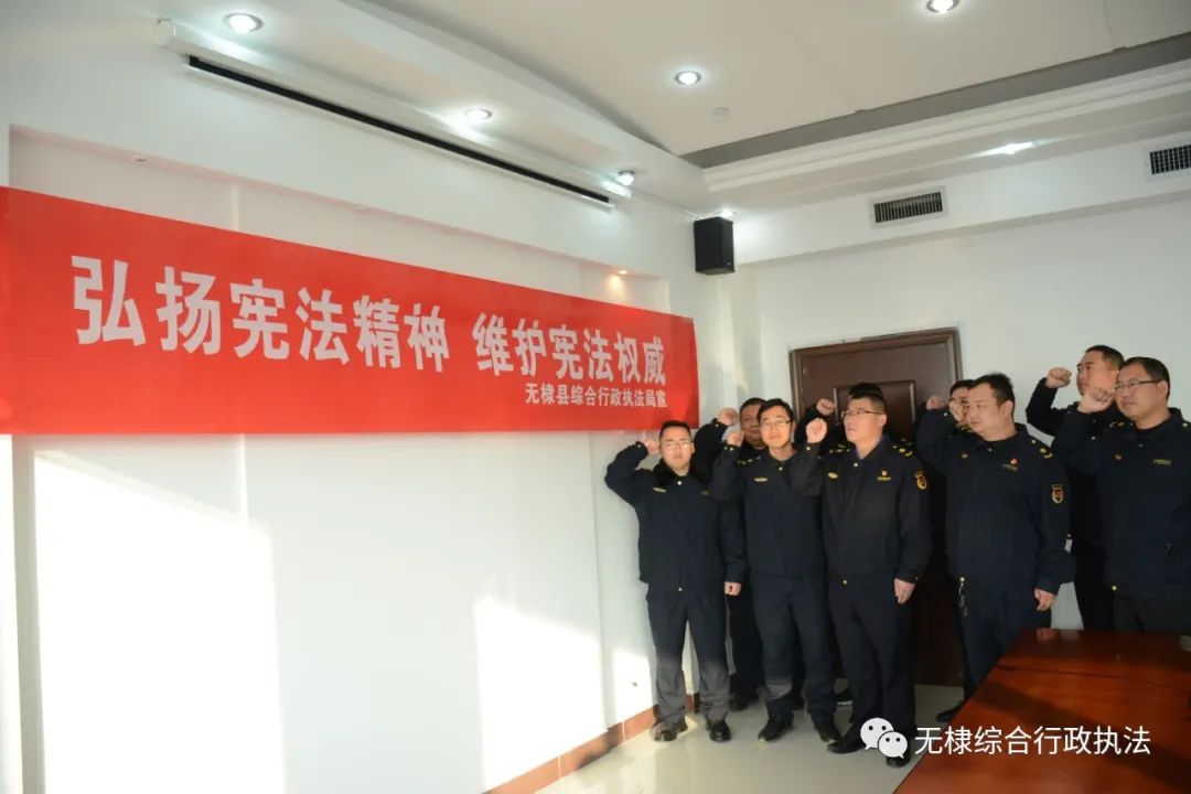 无棣县综合行政执法局组织全局举行了宪法宣誓仪式,重温了宪法誓词。通过宣誓活动,进一步彰显了宪法权威,激励和引导执法局全体干部职工忠于宪法、遵守宪法,履行职责。