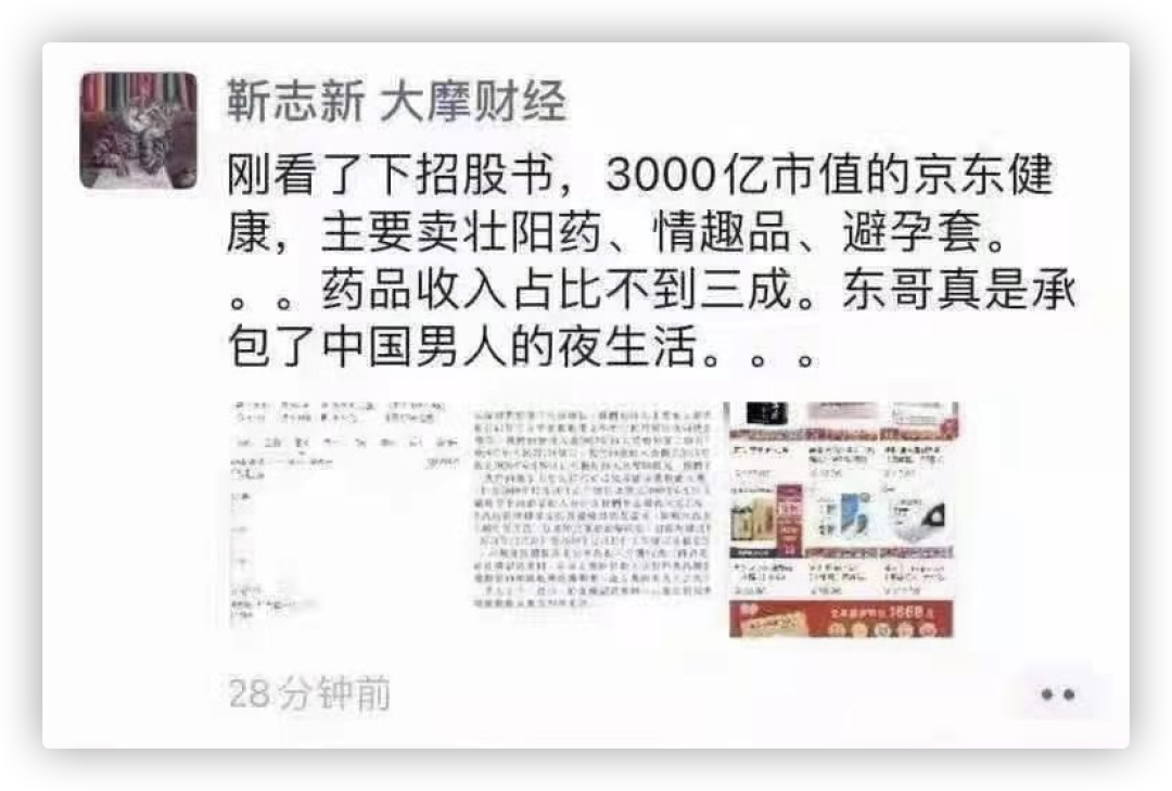 我们翻看京东健康的财报,2019年它收入109亿,其中只有29%是药品收入,其余超过7成都是“非药品收入”。 这个“非药品收入”,说白了就是避孕套、情趣用品、医疗保健等等品类。