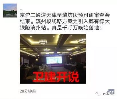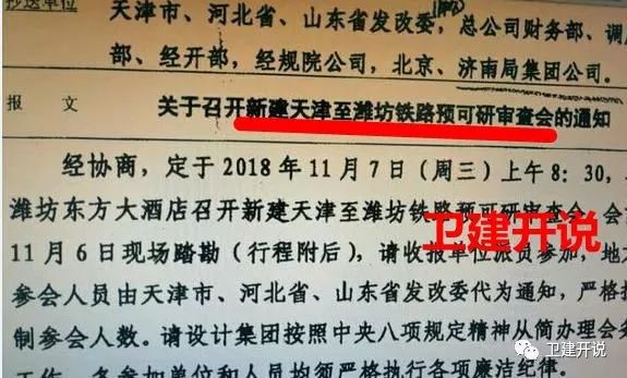 卫建开说从市铁路局获悉,11月7日,新建天津至潍坊铁路预可研审查会在潍坊举行,本次审查会的主要内容为确定天津至潍坊铁路的线路走向及车站设置等问题。