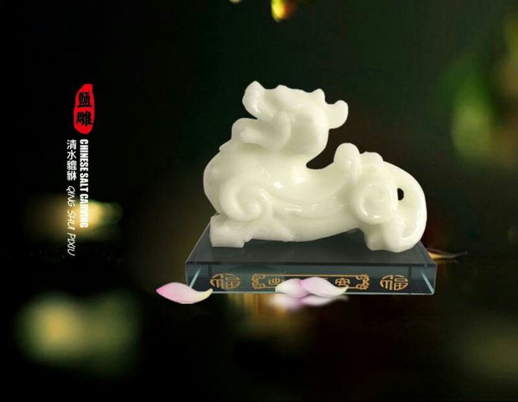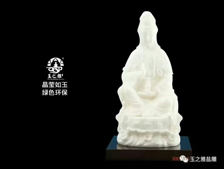 “玉之雅”盐雕是以渤海湾优质海盐为原料,突破盐品易溶损、难塑形的难度,以独特创新的艺术手法,精雕细刻而成。产品洁白高雅、晶莹圆润,蕴含艺术的优雅意境,完美融合传统艺术技法,展现中华瑰宝的人文情怀,历史文化内涵深厚。