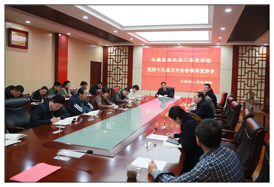 为深入学习、深刻理解、准确把握党的十九届五中全会和习近平总书记重要讲话精神,自觉把思想和行动统一到党中央决策部署上来,12月15日,县委县直机关工委宣讲团成员,县检察院机关党委书记高海银为检察干警进行党的十九届五中全会精神宣讲。