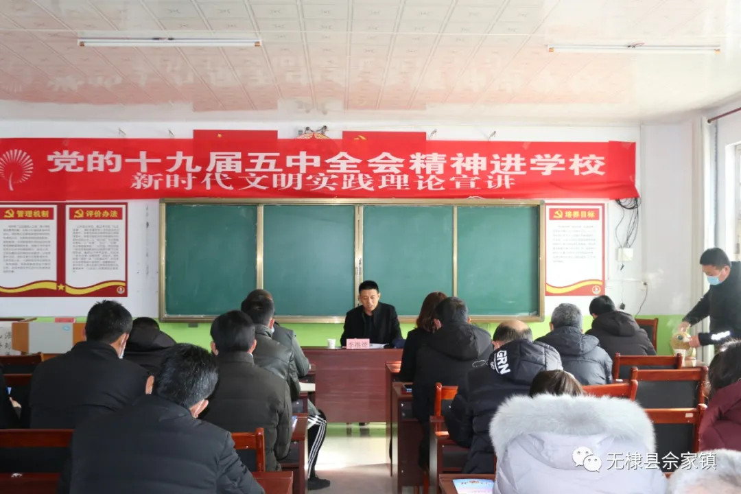 12月16日,无棣县委宣讲团党的十九届五中全会精神宣讲报告会走进佘家镇,县委办公室副主任、扶贫办主任李维德主讲,镇党委书记李维博主持,全镇机关干部、镇直部门负责人、部分人大代表参会。
