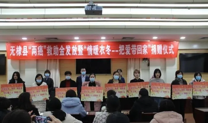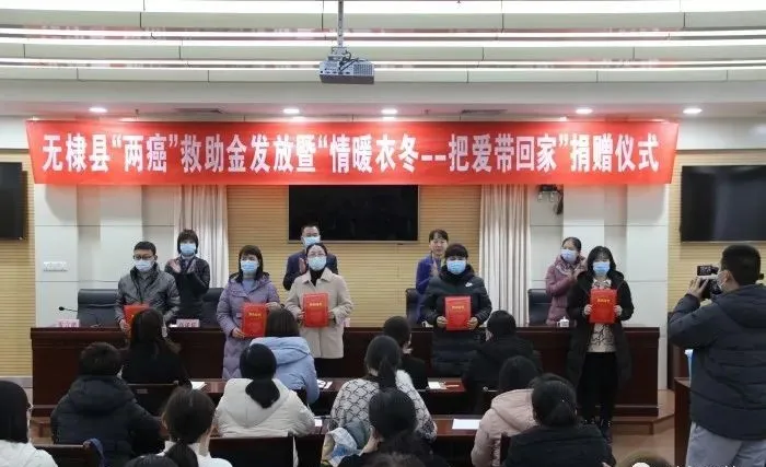 12月29日,由无棣县妇联、县妇女儿童事业发展中心联合举办的无棣县“两癌”救助金发放暨“情暖衣冬——把爱带回家”捐赠仪式在县政务中心第三会议室举行。各镇办分管负责人、妇联主席,部分受助学生,社会各界爱心志愿者代表,县妇联、县妇女儿童事业发展中心全体人员共计70余人参加活动。