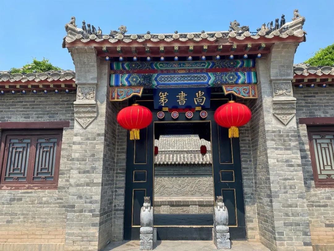 单檐歇山式高台门楼,青砖碧瓦,门楣上悬“尚书第”横匾一方,尚书第这块扁呢,是乾隆帝身边的红人--于敏中大学士赠给吴氏第十三世吴绍诗的。吴绍诗比于敏中年长15岁,两个人私交甚厚,在京期间常在吟诗唱酬。乾隆三十四年(1769年),七十一岁的吴绍诗因政绩突出,由江西巡抚擢任刑部尚书,在回京面见皇上的途中,又被调任礼部尚书。在书法上颇有造诣的太子太保、户部尚书于敏中闻此喜讯,泼墨挥毫,亲笔题写“尚书第”三个大字赠送给吴绍诗,吴绍诗遂决定将故居——“吴家大院”更名为“尚书第”。