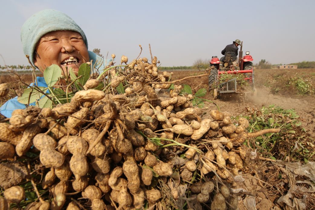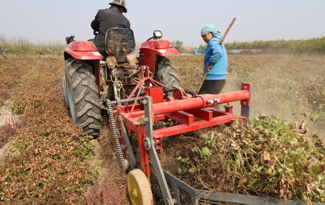 2018年11月7日,无棣荣国天地园林基地的员工在收花生。