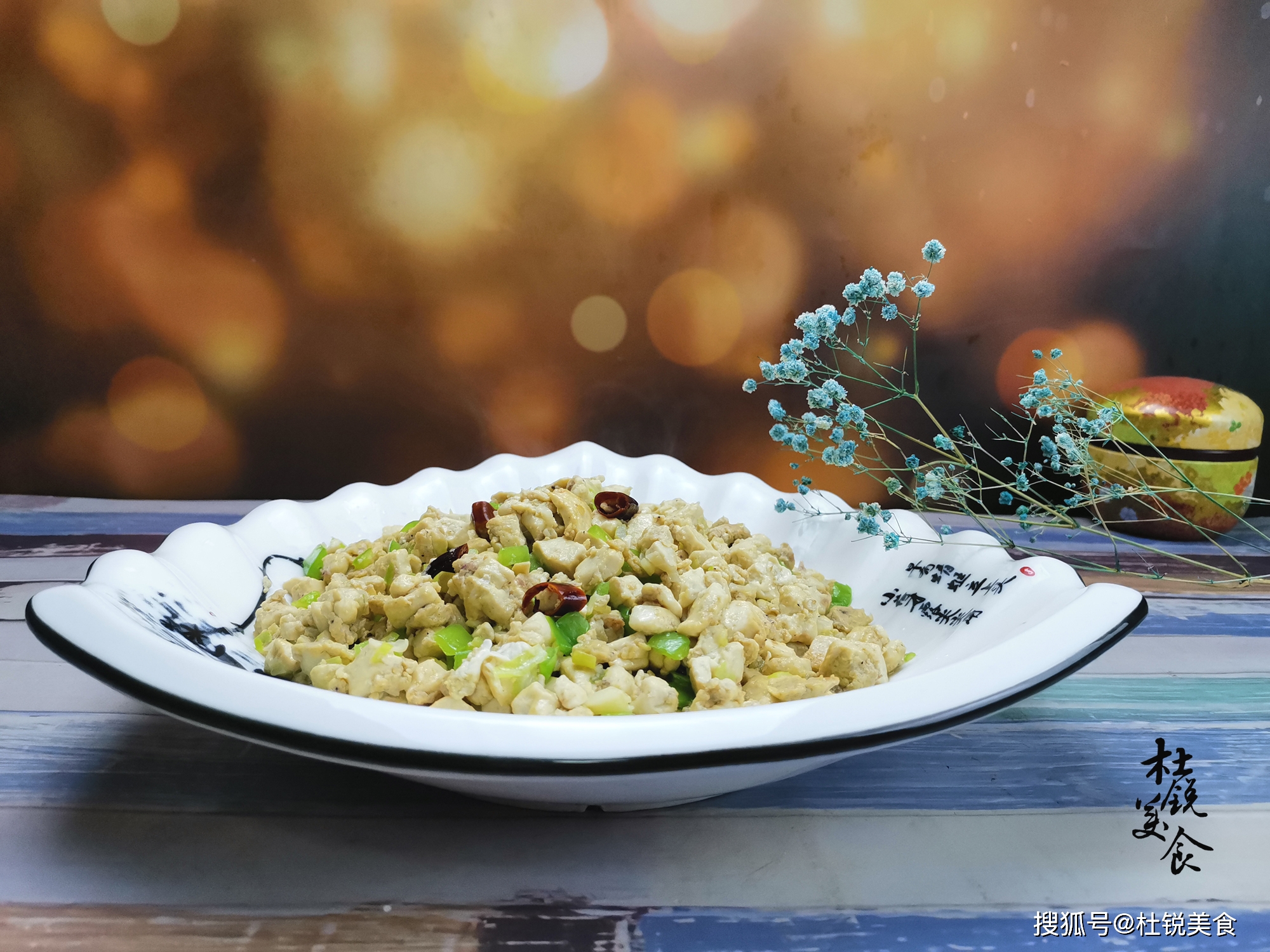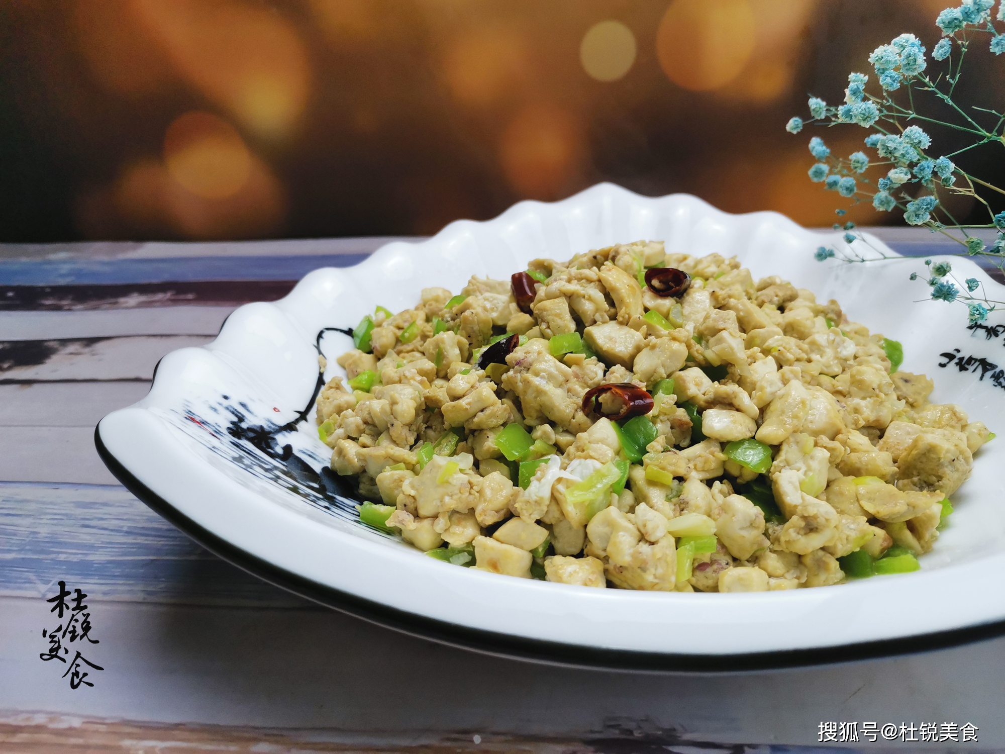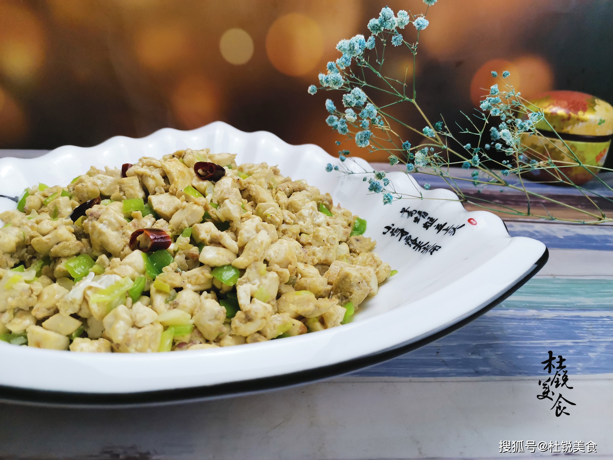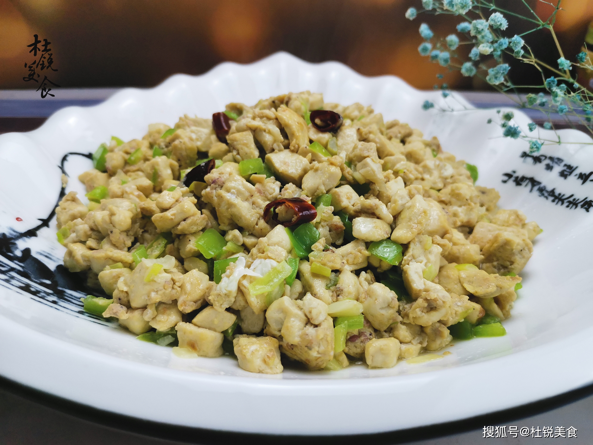 1、做这道菜,一定要先下入干红辣椒,炒出干辣浓香后,再下入豆腐小丁。炒至豆腐丁表面微微变黄,出现一层小焦壳,那样才好吃。虾酱本身咸度较大,切记别再调入含盐的调味料。