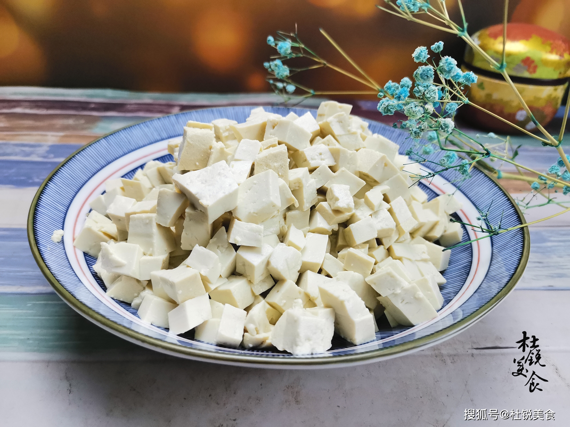 1、选用北豆腐1块,约300克,切成0.5厘米见方的小丁。做这道虾酱炒豆腐一定要选用韧性较强的北豆腐,这样炒出来的豆腐小块才不容易破碎。