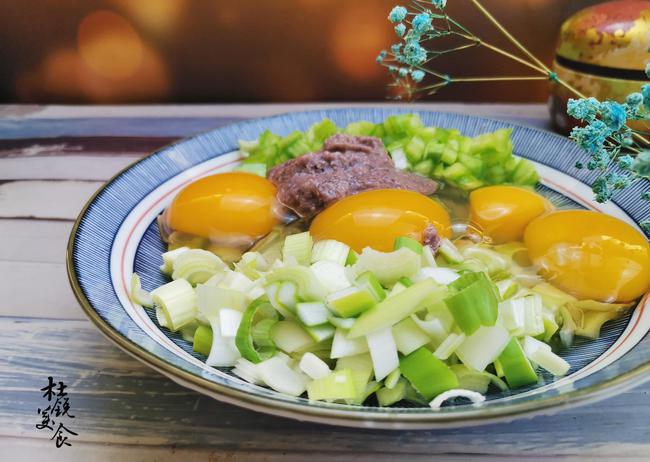 主料:虾酱30克、鸡蛋3个、大葱100克