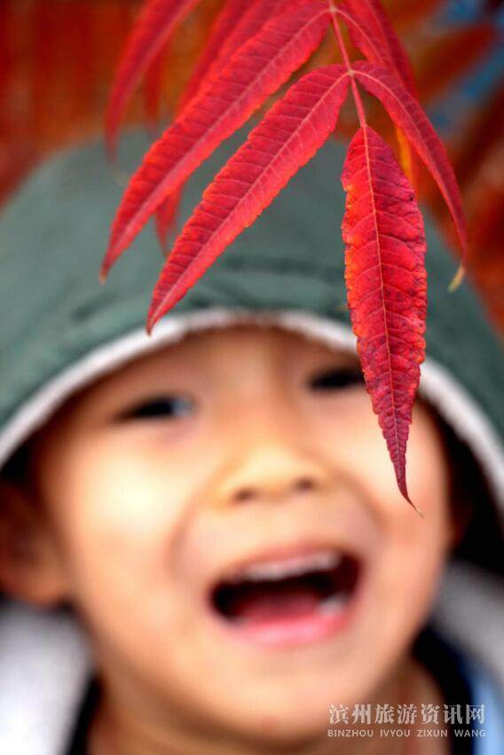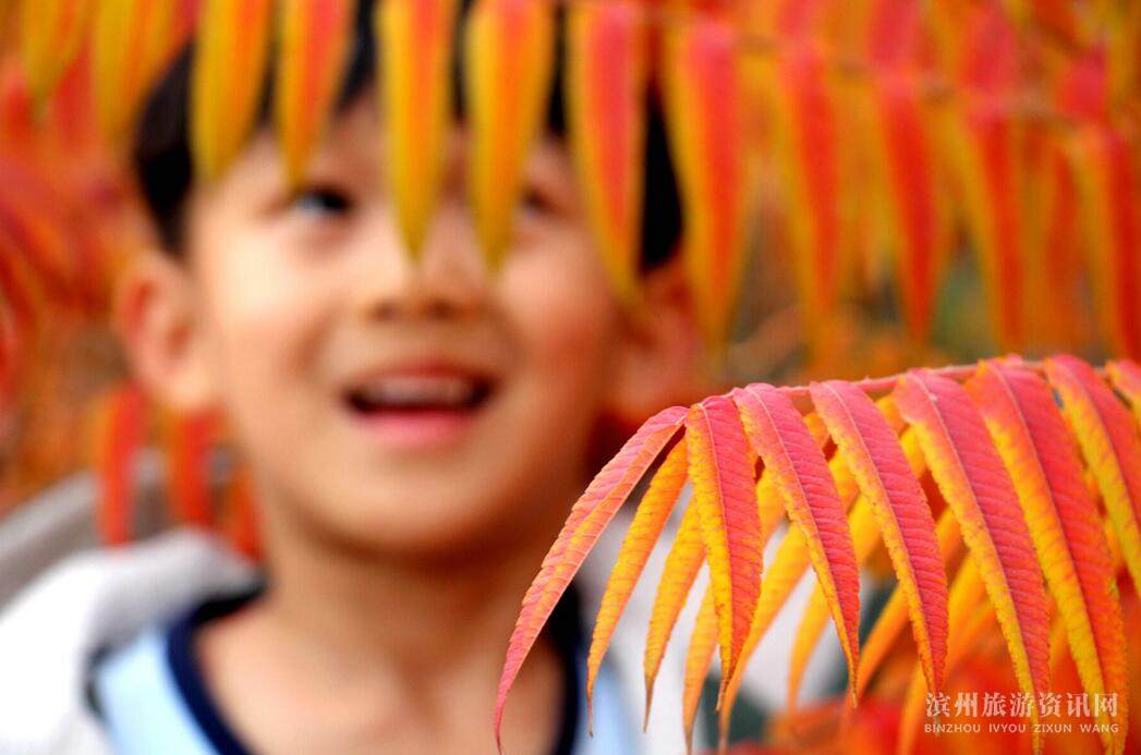 11月4日,一名孩童在无棣县街头的火炬树下玩耍。