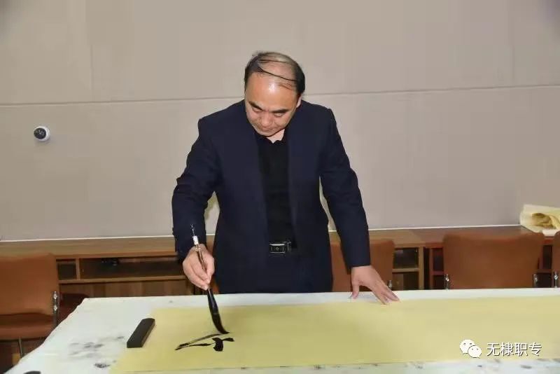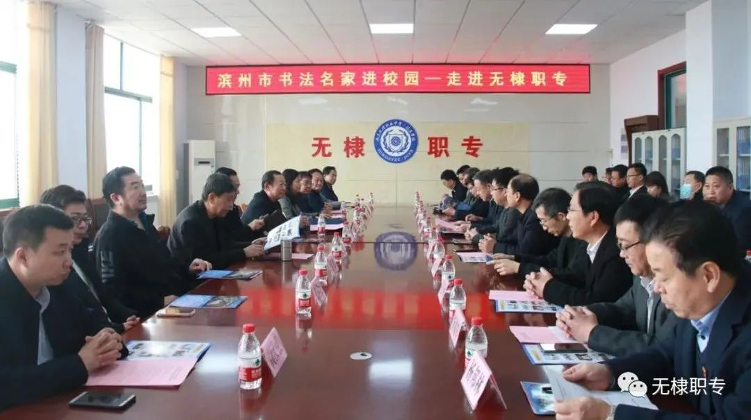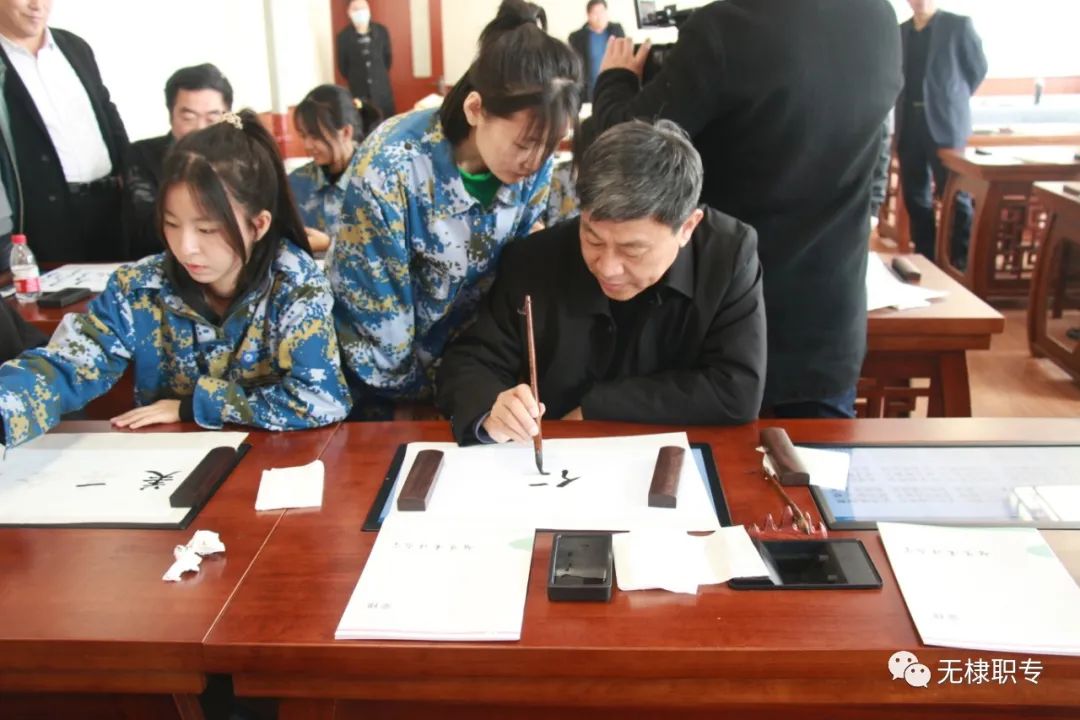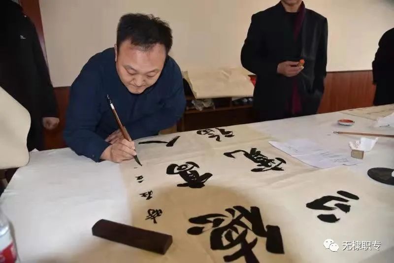 市、县书法名家、兄弟院校负责人30余人齐聚一堂,共话翰墨书香,共商书法教育新创举。冯汝光校长在致辞中表示,滨州市书法名家进校园活动在无棣县职业中专举行,是学校千载难逢的大喜事,必将推动学校传统文化教育继续走深走实,推动书法教学落地落实,推动多元育人开花结果,为培养高素质技术技能型人才打下坚实的文化基础、艺术根基。