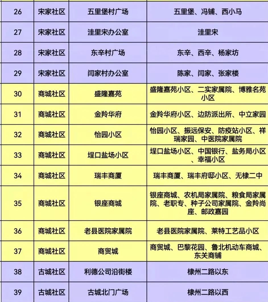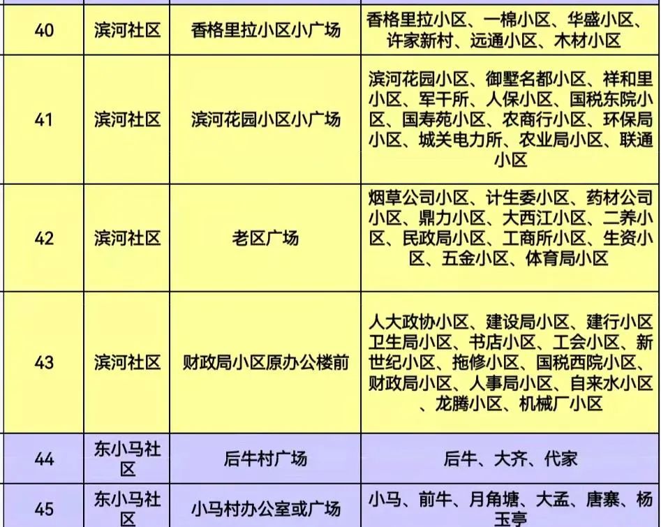地点:辖区内设置45个指定采样点(附后),具体以所属社区、小区、村通知为准。居家健康监测等相关人员要听从工作人员另行安排。