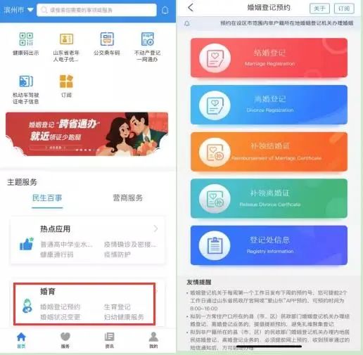 (2)手机端下载打开“爱山东”APP首页——婚姻登记预约,按照提示上传证件照片。